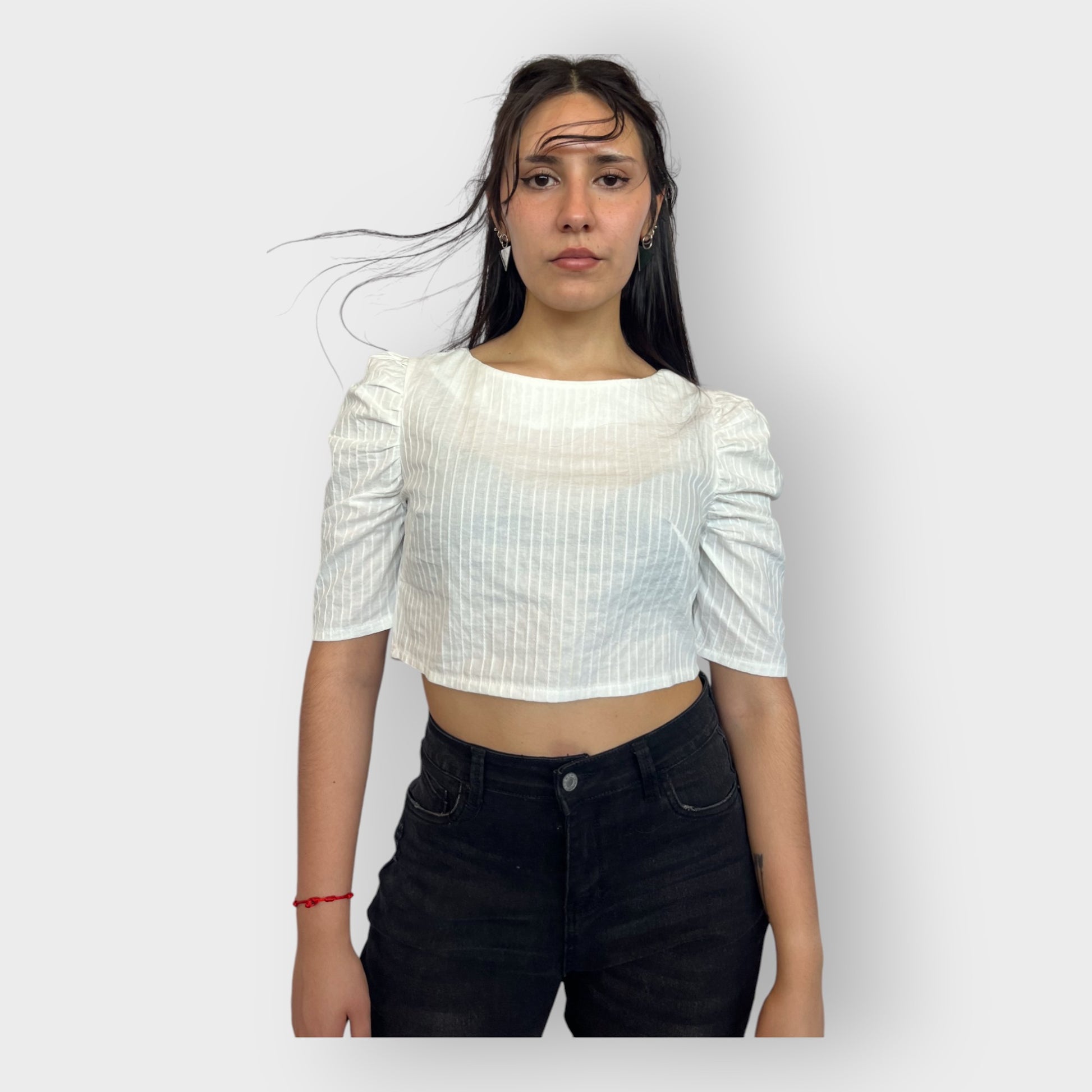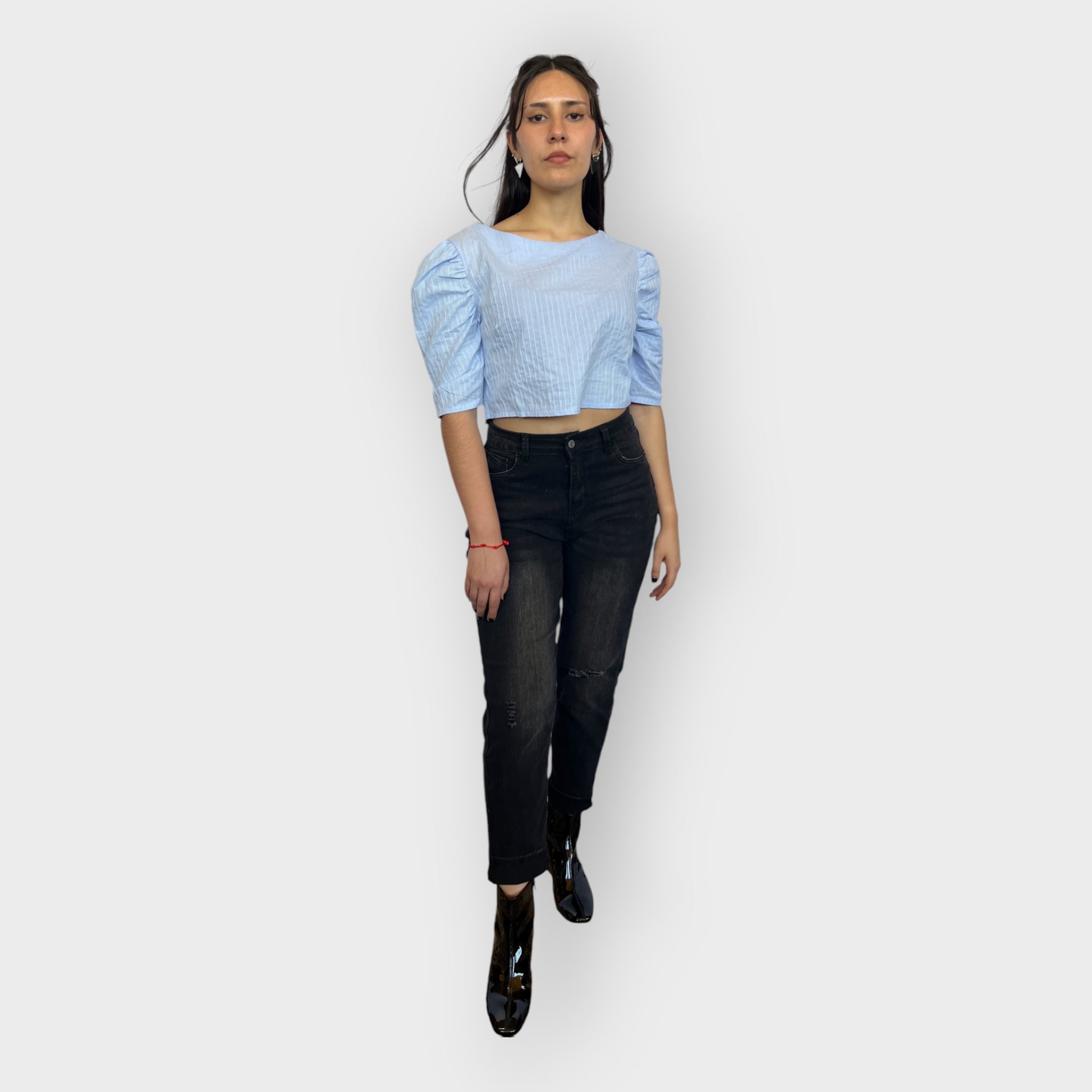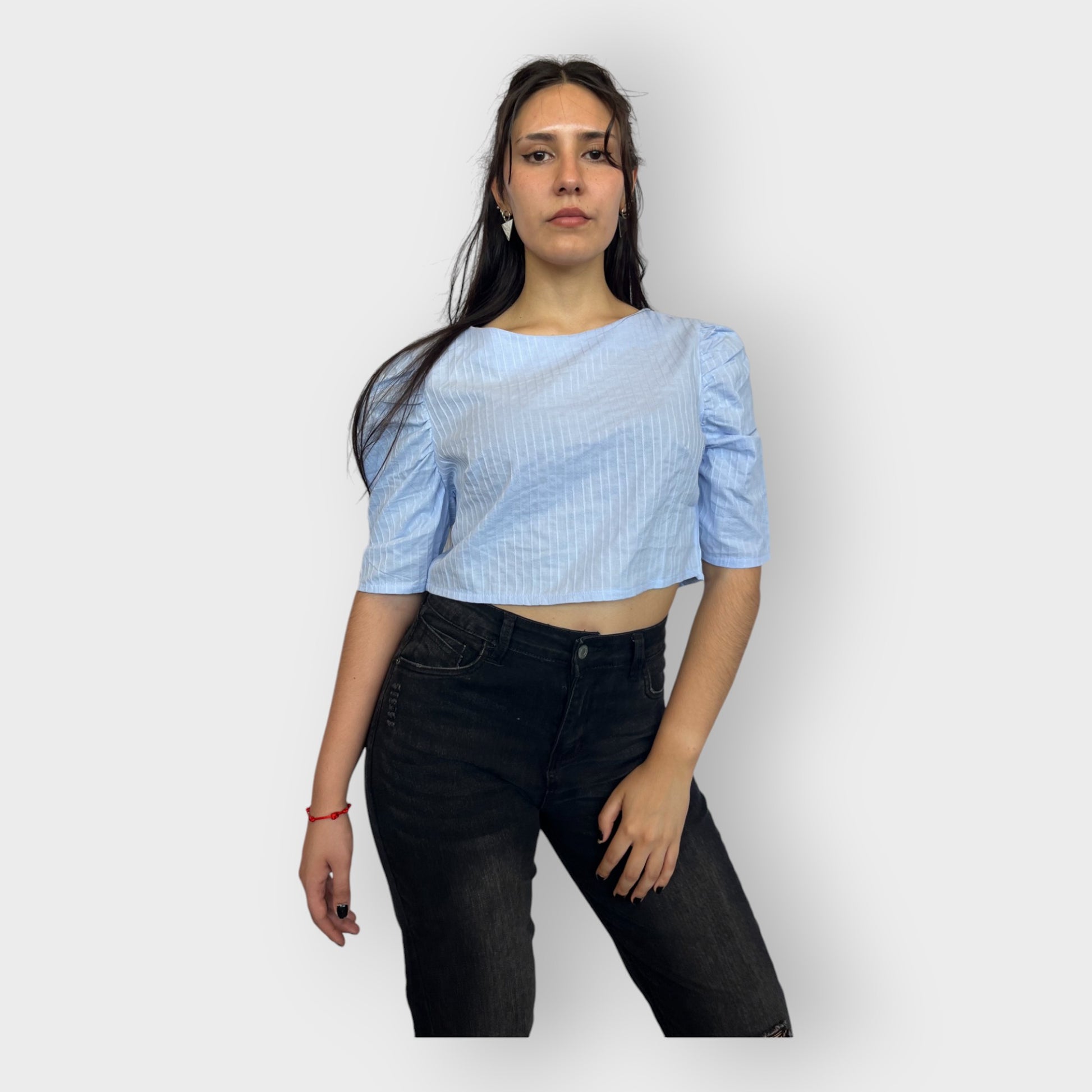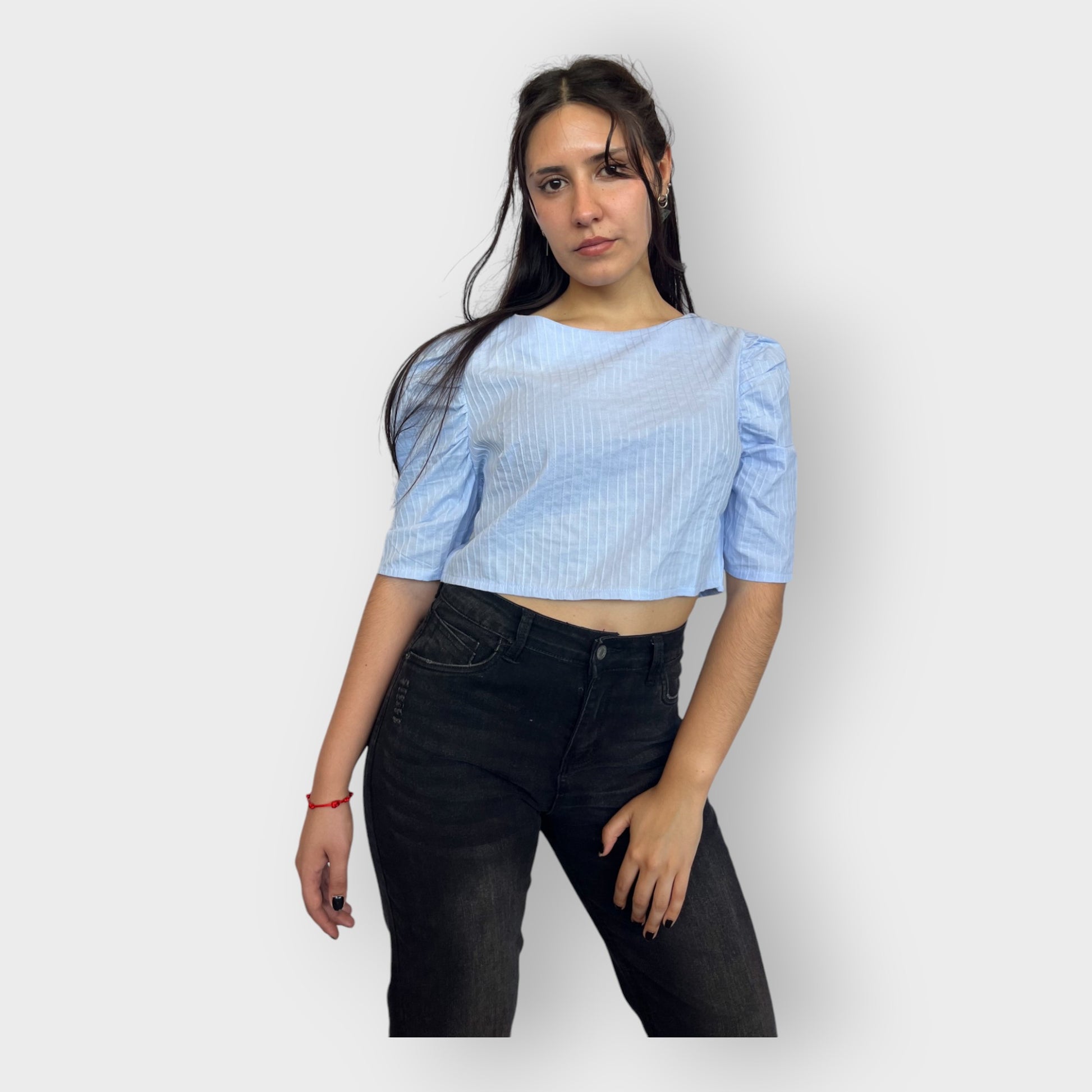 Esta blusa de ORA destaca por su elegante diseño de escote a la base y mangas abullonadas hasta el codo, terminando en un elegante puño que añade un toque moderno. La silueta corta hasta la cintura la hace versátil y perfecta para adaptarse tanto a looks casuales como formales. Su tejido fresco la convierte en una opción ideal para cualquier época del año. Disponible en los clásicos colores azul claro, negro y blanco, es una prenda imprescindible para quienes buscan estilo y comodidad en una sola pieza.