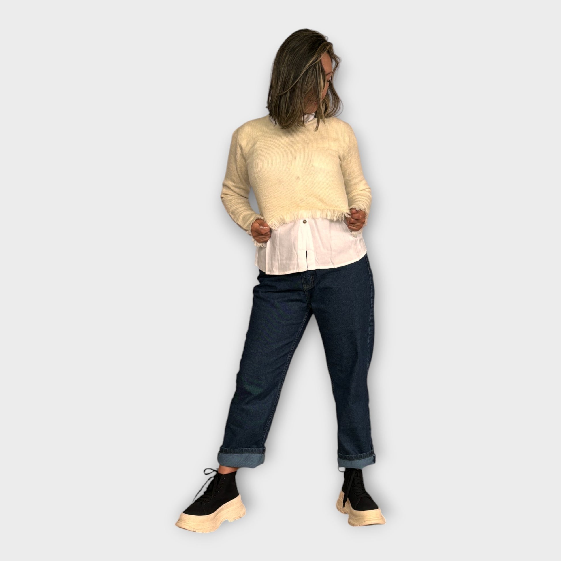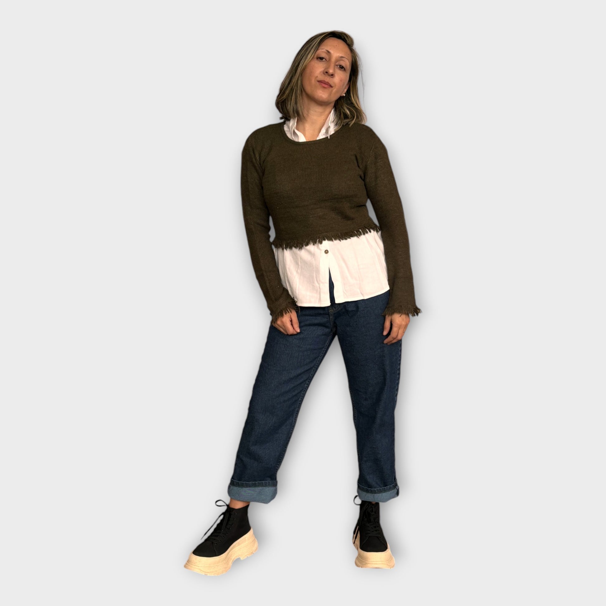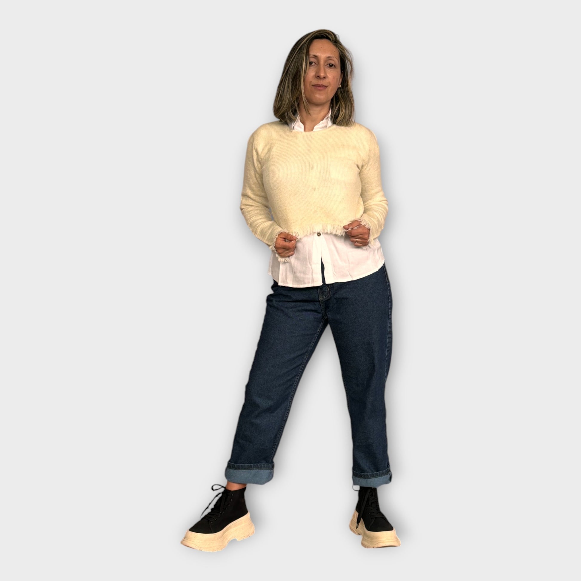 Este buzo tejido de ORA es perfecto para los días frescos que requieren un abrigo liviano. Su diseño a la cintura con delicados flecos en los puños y en el dobladillo le añade un toque distintivo y moderno. Confeccionado en un tejido suave y confortable, es una prenda versátil que combina estilo y funcionalidad. Disponible en los elegantes colores oliva, burdeos y mármol, este buzo es una opción ideal para quienes buscan abrigo sin sacrificar estilo.