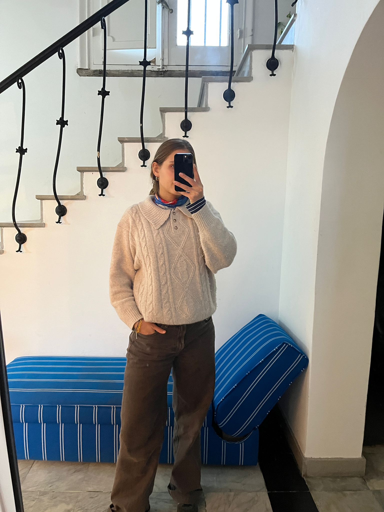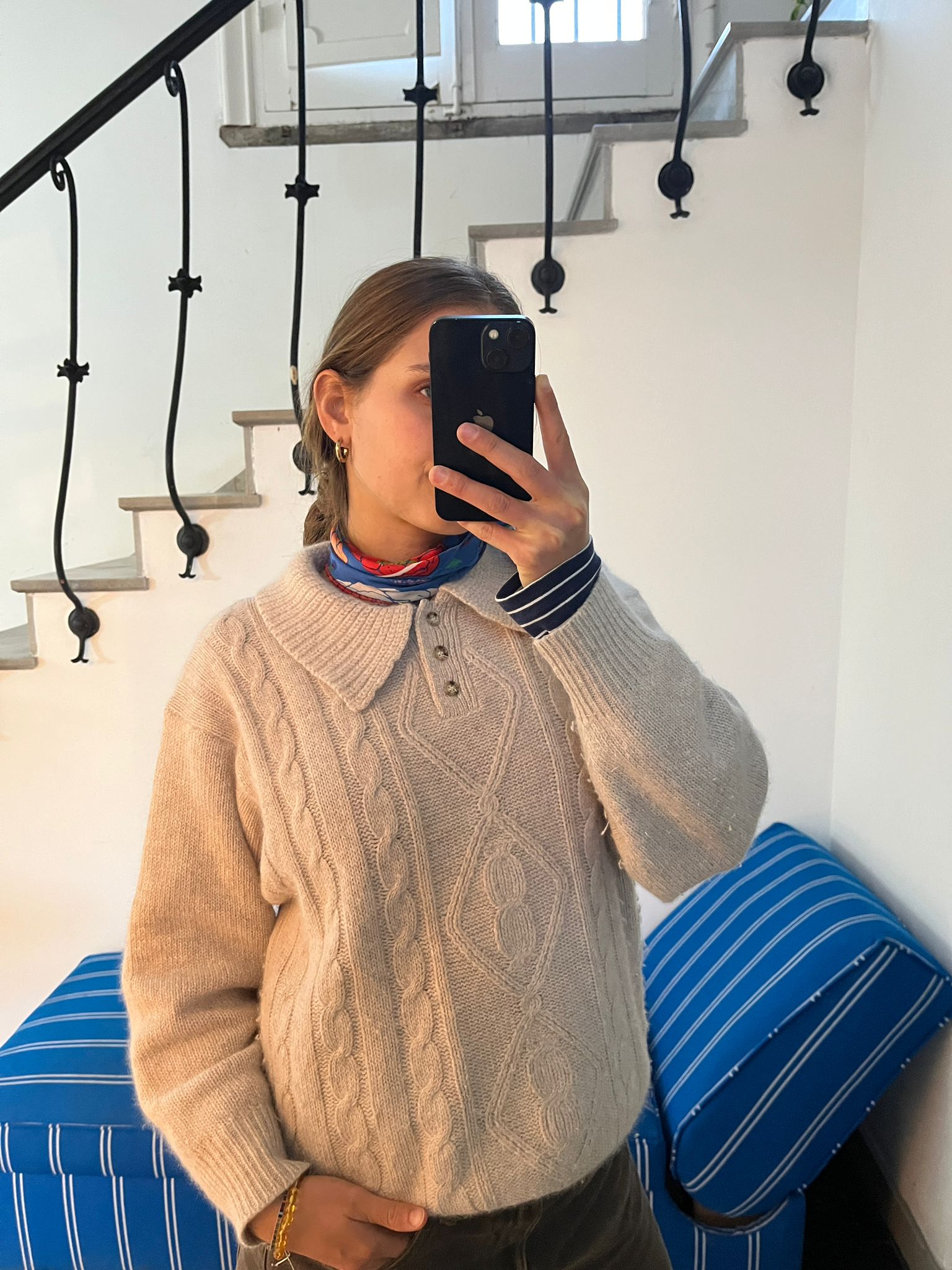Este delicado buzo tejido en lana simil con Cashmir de ORA en un suave color rosa pálido es perfecto para quienes buscan una prenda femenina y acogedora. Su textura ligera y suave lo convierte en una opción ideal para los días frescos. El detalle del cuello y la cartera abotonada le añaden un toque de elegancia clásica, haciendo de este buzo una pieza versátil para combinar con jeans o faldas, ideal para un look casual con un toque de distinción.