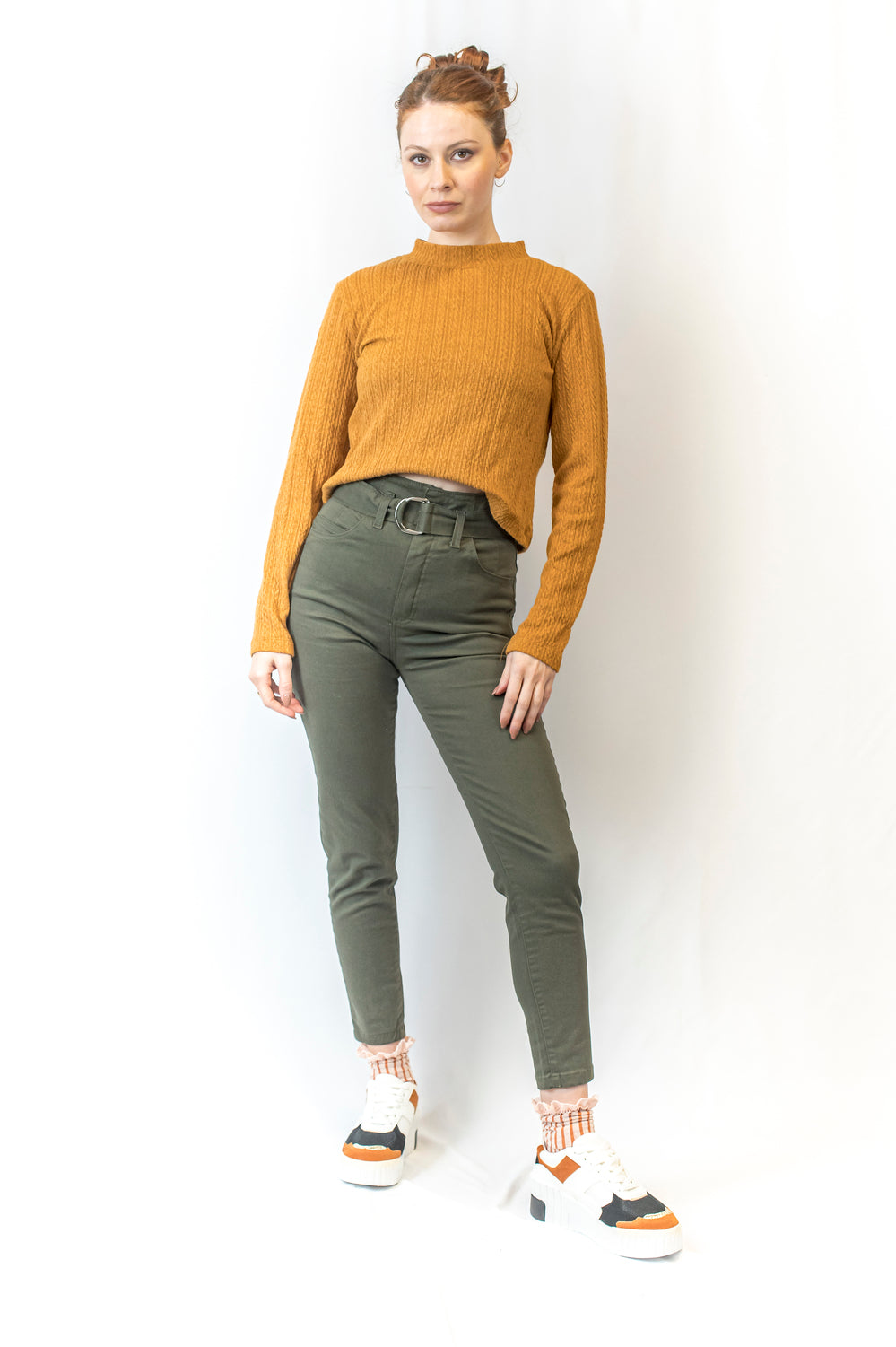 El detalle distintivo de este jean es su cinturón con hebilla de metal, que añade un toque de sofisticación y un detalle funcional que eleva el diseño clásico. Disponible en dos colores versátiles, oliva y negro, este jean es ideal para combinar con cualquier prenda, desde camisetas casuales hasta blusas elegantes, adaptándose a cualquier ocasión.
