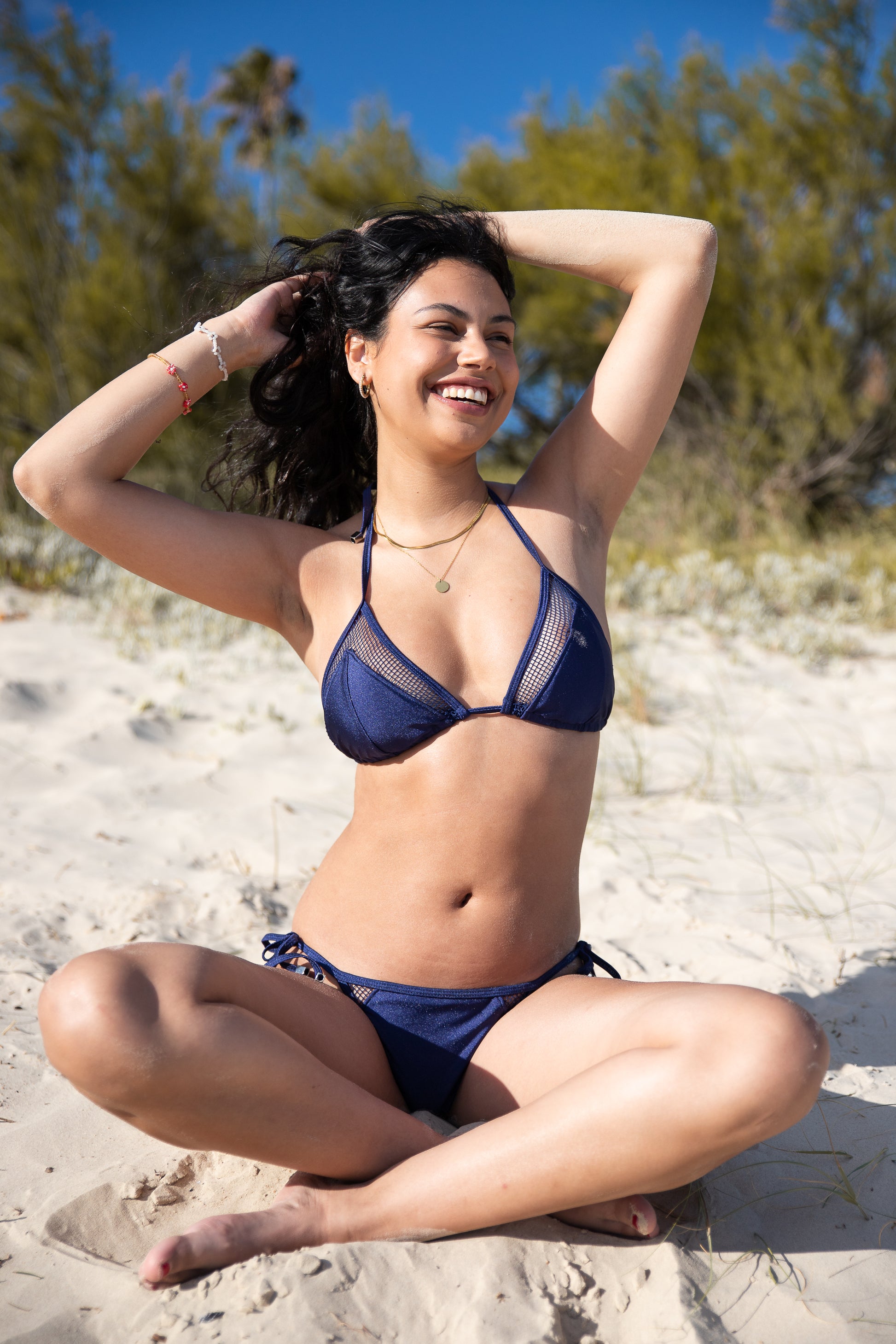 La malla Momo combina un calce ajustable con un diseño que realza la silueta. Su delicado detalle de red aporta sensualidad y personalidad al conjunto, haciéndolo perfecto para destacar en cualquier ocasión. Elegante, cómodo y versátil, es una apuesta segura para el verano.