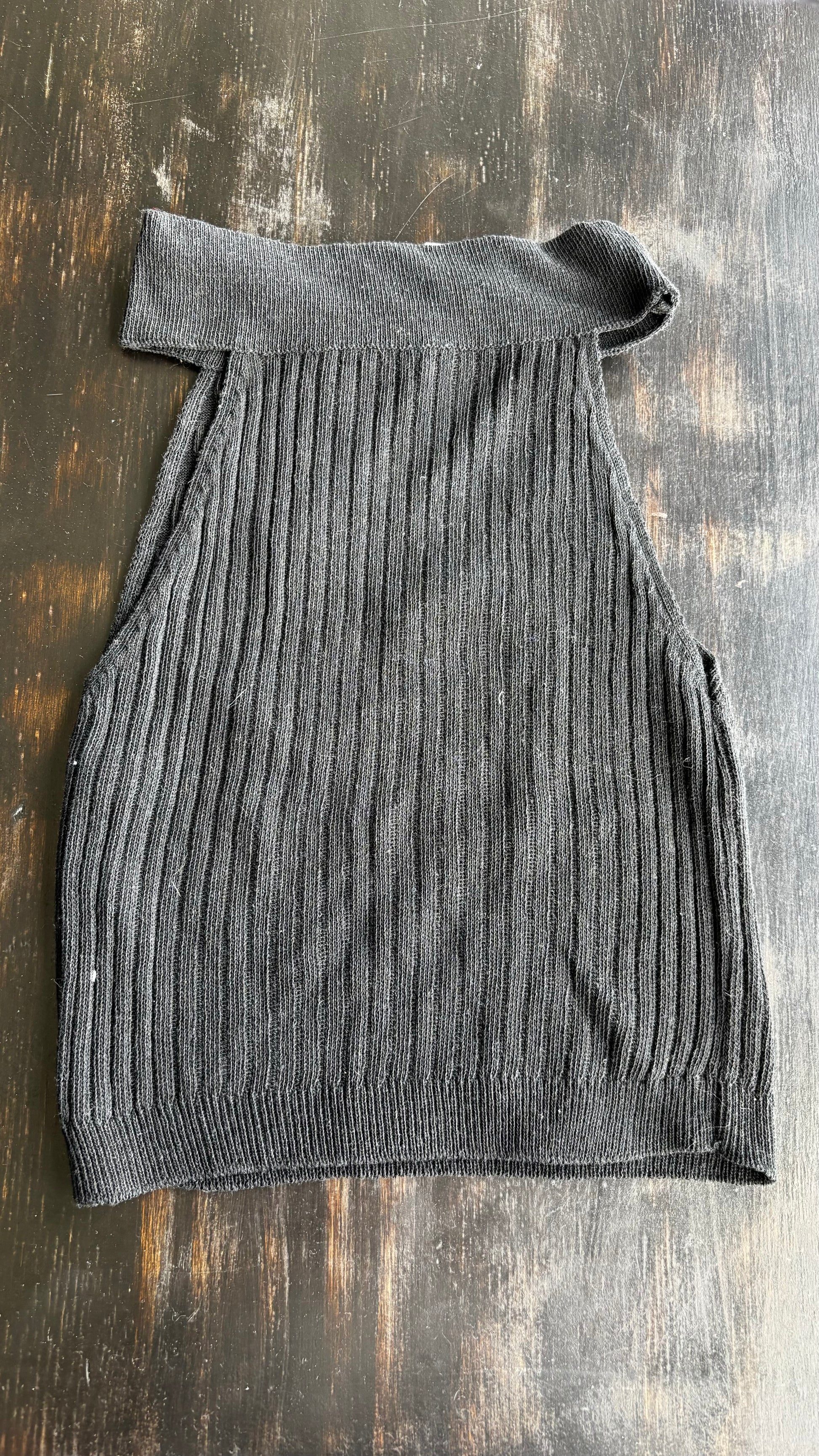 Este top sin mangas presenta un diseño de canalé vertical, confeccionado en tejido elástico que se adapta al cuerpo para un ajuste cómodo y favorecedor. El cuello alto aporta un toque moderno y elegante, perfecto para combinar con diferentes estilos, tanto informales como más sofisticados.